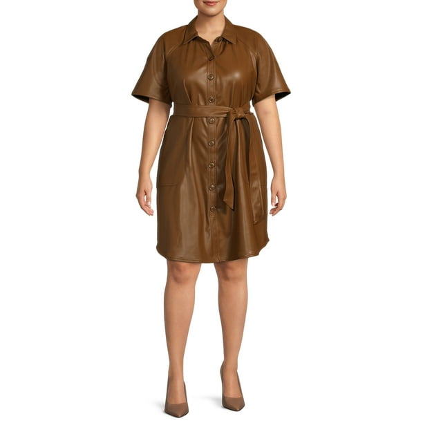 Terra Sky Women S Plus Size Vegan Faux Leather Shirt Dress Walmart Com